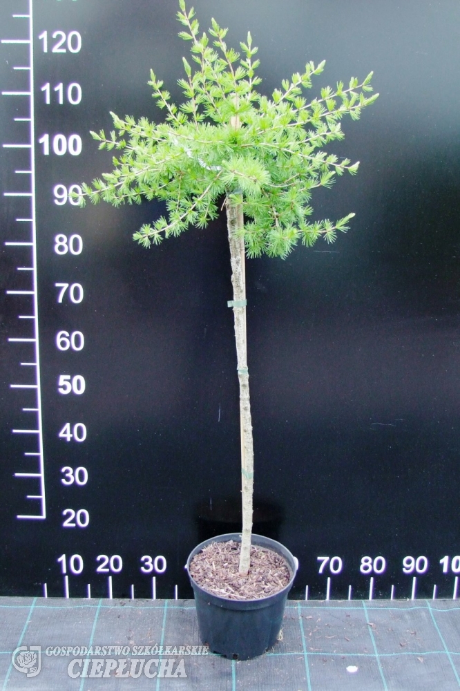 A creeping variety of European larch native to Hungary, it is usually grafted onto a trunk and forms a compact tree with drooping shoots. Its green, seasonal needles turn intensely yellow in autumn, and its shoots are thin and light brown, with resinous buds. It grows best in full sun, in fertile, moderately moist soil, providing a decorative garden accent.
