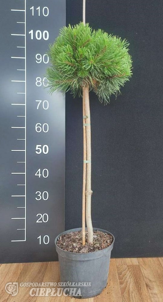 Karłowa sosna o płożącym, niskim pokroju i bardzo powolnym wzroście. Tworzy gęste pędy z ciemnozielonymi igłami zebranymi po dwie, osiągając po 10 latach ok. 0,5–0,7 m średnicy. W pełni mrozoodporna i mało wymagająca, polecana do ogrodów skalnych, na skarpy, murki oraz do uprawy w pojemnikach.
