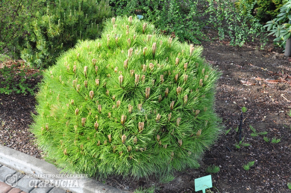 Karłowa, mieszańcowa odmiana sosny o bardzo gęstym, płaskokulistym pokroju, po 10 latach osiągająca ok. 0,5 m wysokości i 0,7 m szerokości. Ma długie, cienkie, zielone igły, jest odporna na mróz i suszę, ma niewielkie wymagania glebowe i najlepiej rośnie w słońcu. Polecana do ogrodów skalnych, wrzosowisk i uprawy pojemnikowej, często spotykana w formie piennej jako miniaturowe drzewko.