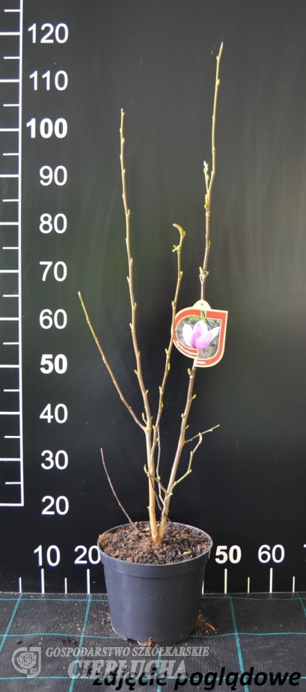 Popularna odmiana magnolii o obfitym kwitnieniu i dekoracyjnym ulistnieniu, znana już od XIX wieku. Tworzy niewielkie drzewo z zaokrągloną koroną, dorastające do 4–8 m wysokości, z dużymi liśćmi i efektownymi, kielichowatymi kwiatami purpuroworóżowymi u nasady i białymi na końcach. Kwitnie bardzo obficie na przełomie kwietnia i maja, a późnym latem wytwarza ozdobne, czerwone nasiona. Roślina łatwa w uprawie, mrozoodporna, najlepiej rośnie na glebach żyznych i lekko kwaśnych.